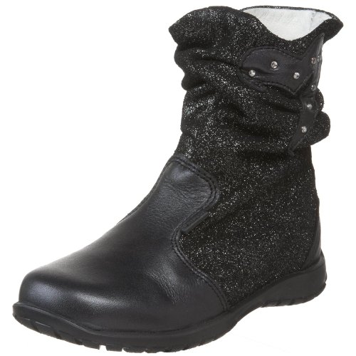 Go ahead and indulge your little fashionista with this totally glam and fun-to-wear ankle boot from Primigi. Crafted with a durable leather upper, the zip-up design features a sparkly fabric shaft and rhinestone-studded overlay detail at the side. It's a cute accompaniment for a colorful pair of leggings and oversized top.